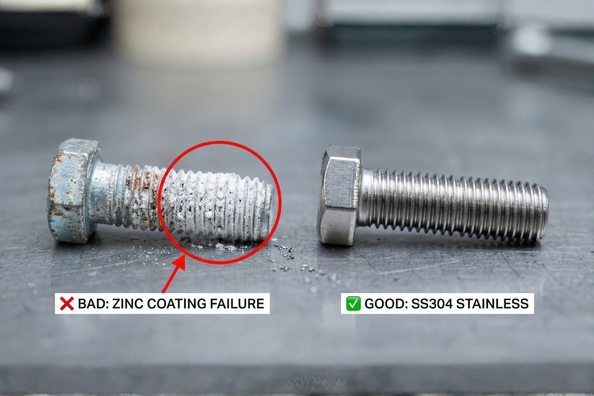 If your zinc bolts show white powder, the coating is already failing.