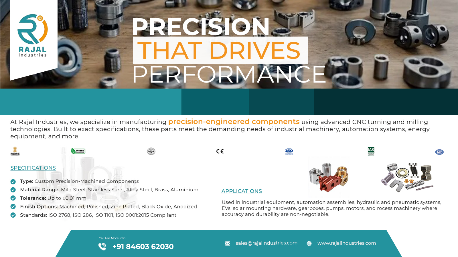 At Rajal Industries, we specialize in producing custom precision components through advanced CNC machining, milling, turning, and grinding, ensuring dimensional accuracy, high surface finish, and compliance with global industry standards.